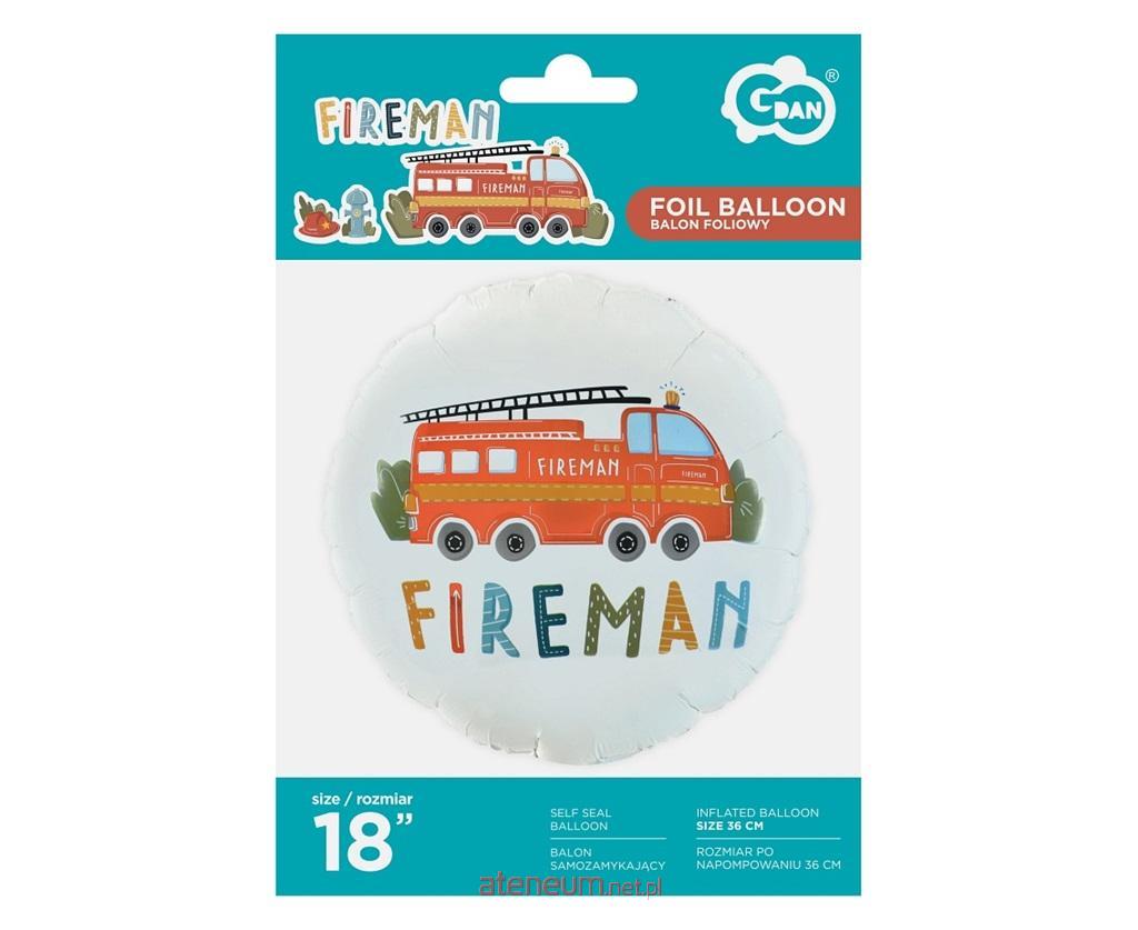 Balon foliowy Fireman, okrągły 18 cali Rozmiar: 18 cali (46cm) Kolor: biały, wielokolorowy Ilość sztuk w opakowaniu: 1 szt. Kształt: okrągły Rodzaj: foliowy Producent: Godan S.A.