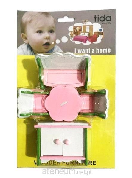Drewniane mebelki dla lalek szafka, stolik z 2 fotelami i kanapą. Produkt zapakowany w kartonową podstawkę z przezroczystym kloszem.