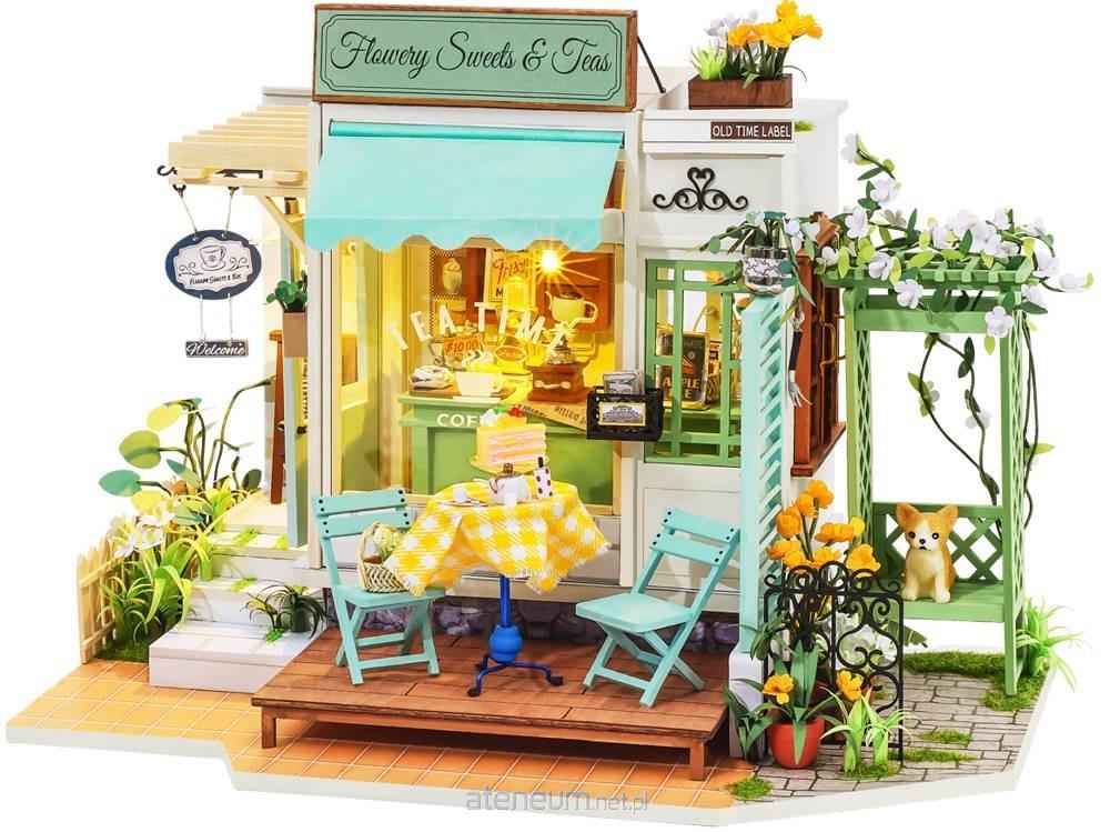Zestaw umożliwiający złożenie miniaturowej kawiarni z oświetleniem LED. Do budowy modelu wykorzystano między innymi drewno, papier, tkaniny, drut, tworzywo sztuczne oraz różne elementy dekoracyjne takie jak: kolorowe ozdoby, cekiny, koraliki, sztuczne kwiaty oraz wiele innych materiałów. Dodatkowego uroku nadaje całości oświetlenie LED, dzięki któremu kawiarenka może pełnić rolę nastrojowej dekoracji lub lampki nocnej. Opakowanie oprócz czytelnej, obrazkowej instrukcji zawiera także baterie, pędzelek, farby akrylowe, przezroczysty, bezwonny klej oraz pęsetę ułatwiającą montaż małych elementów. Budowa tego modelu pomoże rozwinąć zdolności manualne i przyniesie dużo satysfakcji.