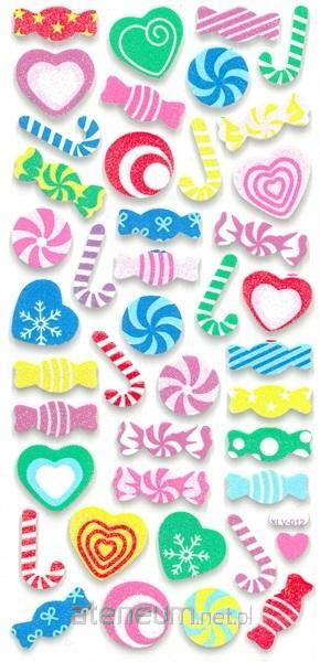 42 brokatowe naklejki piankowe, rozmiar naklejki ok. 3 cm, grubość 2 mm.