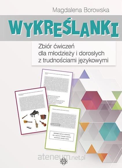 Wykreślanki to zeszyt z ćwiczeniami dla młodzieży i dorosłych, u których występują trudności z czytaniem i pisaniem, aktualizacją słów, linearnym przetwarzaniem informacji, koncentracją i uwagą. Zaburzenia te występują m.in. u osób z: