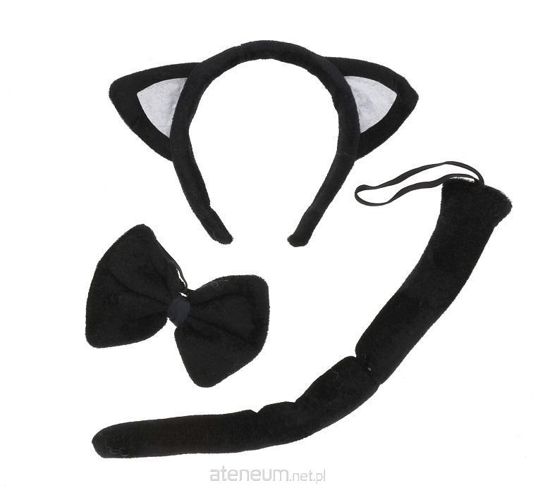 Strój KOTEK czarny, przebranie, 3 elementy Zestaw wykonany jest z miękkiego materiału. Kolor: czarny W skład zestawy wchodzą: - opaska z uszami, - muszka na gumce, - ogonek na gumce.