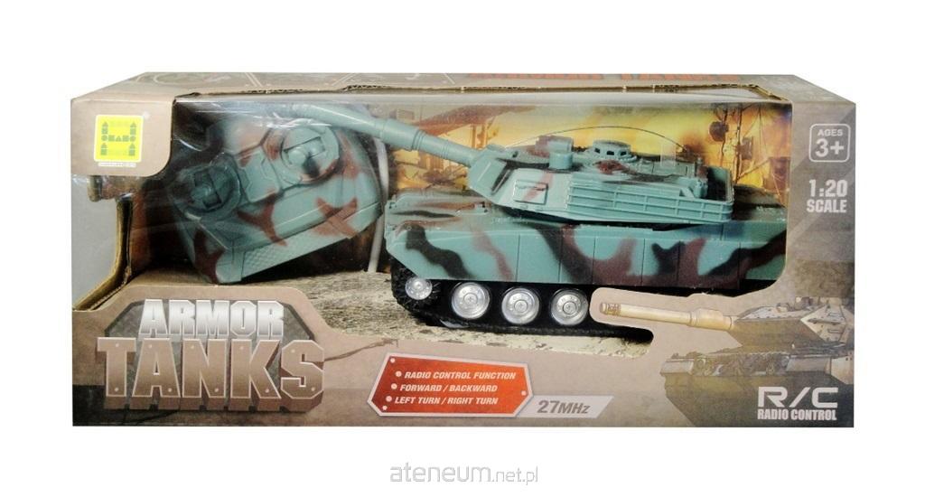 Plastikowy czołg dla dzieci sterowany pilotem. Świeci światełkiem, wydaje dźwięki oraz obraca działem i porusza się we wszystkich kierunkach (prawo, lewo, przód, tył). Produkt działa na baterie typu AA. Baterie nie znajdują się w zabawce. Produkt dla dzieci od 3 lat. Produkt zapakowany w kartonowe opakowanie z przezroczystym okienkiem Podane wymiary stanowią wymiar opakowania.