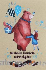Kartka z serii Vintage, w powiększonym tzw. Angielskim formacie 140x190 mm. Wykonana na papierze kraft z niezwykłą dbałością o szczegóły, zdobiona metalizowaną folią. Wewnątrz znajduje się tekst życzeń, a całość uzupełnia dopasowana kolorystycznie koperta. okazja: urodziny