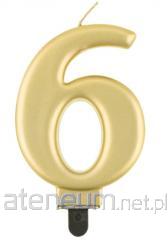 Świeczka cyferka 6 Beauty&Charm metalik złota 8cm
