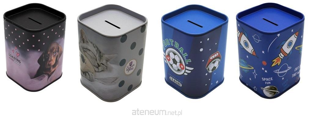 Wielobarwne, metalowe skarbonki o wysokości 10 cm i średnicy 8,5 cm z motywem sowy idealnie sprawdzą się do oszczędzania lub przechowywania przez dzieci monet i banknotów. Otwór znajduje się na górze. Nie jest zamknięta na stałe - otwierana od góry poprzez wyciągnięcie wieczka.