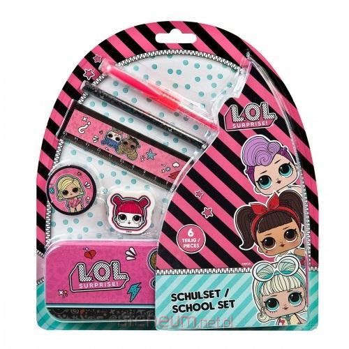 Zestaw Przyborów Szkolnych 6 El., LOL Surprise Zestaw przyborów szkolnych, stanowiących podstawowe wyposażenie każdego malucha. Starannie wykonany, złożony z piórnika, długopisu żelowego, ołówka temperówki, gumki i linijki. Ozdobiony efektownym wizerunkiem LOL Surprise. Pomogą zbliżyć się do tajemniczego świata niebezpiecznych zwierzaków żyjących w prehistorycznych czasach. One też mogą towarzyszyć dzieciom w codziennych szkolnych zmaganiach. Dzięki nim szkoła może być fajna. Nieważne czy jesteś pierwszoklasistą czy piątoklasistą - potrzebujesz przyborów do szkolnej przygody. Wyróżniają się wysoką jakością i funkcjonalnością. Zestaw przyborów szkolnych, 6 elementów, bardzo starannie wykonany. Zestaw zawiera: blaszany piórnik o wymiarach: 20 cm x 6 cm x 2 cm. Ołówek, długopis żelowy, temperówkę, gumkę i linijkę. Wszystkie elementy zestawu wyróżniają się wysoką jakością i funkcjonalnością. Wymiary opakowania: 25 cm x 25 cm x 2,5 cm.
