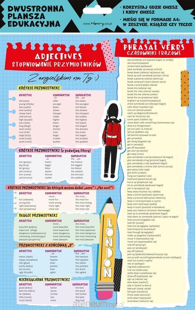 Dwustronna plansza/ściąga A4 J. angielski przyimki