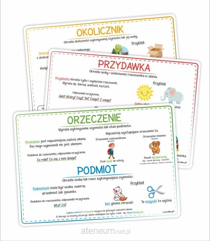 Kolorowe plansze edukacyjne do nauki części zdania to idealna pomoc dla dzieci, aby przyswoiły łatwiej i szybciej części zdania.