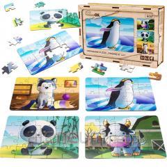 Układanka składa się z elementów o ciekawych i nietypowych kształtach (np. obiekty, organizmy). Gotowa układanka nie będzie miała klasycznego prostokątnego kształtu, natomiast odwzorowywać będzie kształt danego zwierzątka. Przy układaniu warto sugerować się grafiką z pudełka. Wszystkie elementy są zapakowane w drewniane opakowanie, które chroni zawartość. Produkt może być oryginalną ozdobą każdego pokoju.