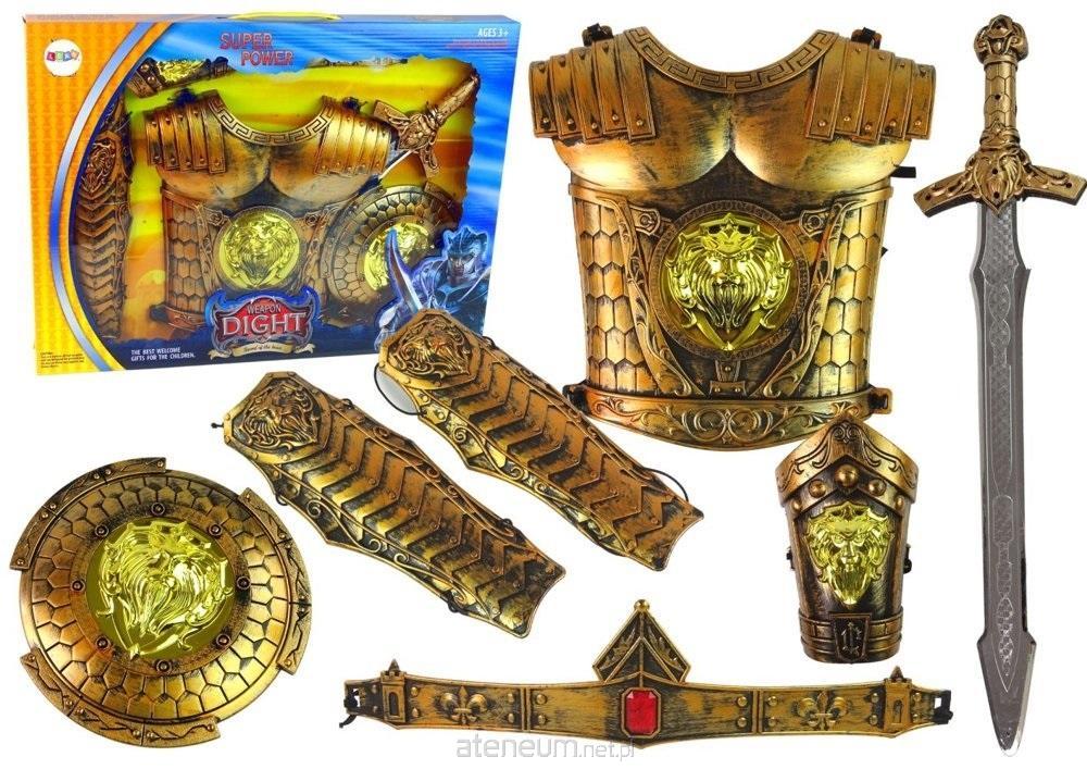 Zestaw Kostium Rycerza Dla Dzieci Karnawał Zbroja Niezbędnik małego rycerza to genialny prezent dla każdego chłopca. To idealna propozycja nie tylko do codziennej zabawy z rówieśnikami, ale i jako ciekawy dodatek do stroju na bal przebierańców w przedszkolu i szkole. Pokaźny komplet akcesoriów podbije serce nawet najmniejszego fana! Większość osób marzy o rycerskich przygodach, które nieraz słyszeli w bajkach. Przemierzać góry i doliny, aby ratować ludność przed potworami i piękne księżniczki z opresji. Piękna, złota zbroja z dodatkami przeniesie malucha w bajkowy świat. Ochraniacze na nogi, tarcza, zbroja wykonane są z twardego plastiku, będą stanowić potężną skorupę w trakcie walk. Długi miecz i korona wskazują na króla, na wszystkich elementach widnieje motyw lwa, który można potraktować jako herb. Włóż zbroje, chwyć miecz do ręki i poczuj się jak prawdziwy średniowieczny wojownik! Prezentowany zestaw został wykonany z atestowanego tworzywa wysokiej jakości, które pozwoli dziecku na długą, a przede wszystkim bezpieczną zabawę. Elementy wykonane są z dbałością, co z pewnością podniesie poziom satysfakcji małego bohatera. W skład zestawu wchodzą: - napierśnik rycerski - korona - tarcza - miecz - korona - ochraniacze Wymiary elementów zestawu: - popiersie: 30 cm x 32 cm x 4 cm dwa regulowane paski: 70 cm - miecz: 54 cm x 13 cm x 3 cm długość rekojeści: 12 cm - tarcza: 21 cm - korona: 29 cm - ochraniacze: 27 cm x 10 cm x 2 cm Wszystkie elementy posiadają elastyczne gumki, dlatego bez problemu można dopasować do dziecka. Prezentowany zestaw został wykonany z atestowanego tworzywa wysokiej jakości, które pozwoli dziecku na długą, a przede wszystkim bezpieczną zabawę. Elementy wykonane są z dbałością o dokładne odwzorowane realnego sprzętu strażackiego, co z pewnością podniesie poziom satysfakcji małego bohatera. Wymiary opakowania: 57 cm x 43 cm x 5 cm Rycerska zabawka przeznaczona jest dla dzieci powyżej 3. roku życia. Uważamy, że zabawka ta będzie doskonała zarówno w domu, jak i w roli oryginalnego dodatku do stroju na bal przebierańców w przedszkolu i szkole. Zestaw posiada certyfikat CE.