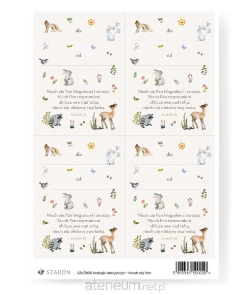 Cztery naklejki na arkuszu, można wkleić i wypisać dedykację w książce.