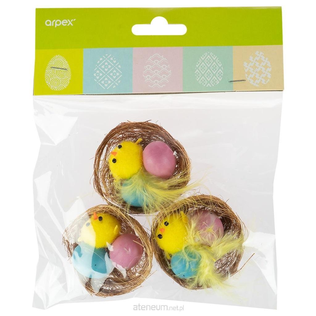 Kurczaczek w gniazdku z kolorowymi jajkami. Wysokość 5 cm.