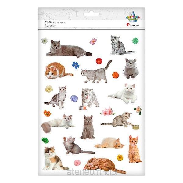 Naklejki papierowe: koty, kwiaty, 32 szt.