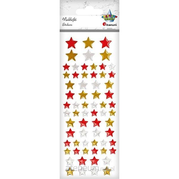 Naklejki foliowe: gwiazdki 9 x 9, 11 x 11, 14 x 14 mm - złote, srebrne, czerwone, 66 szt.