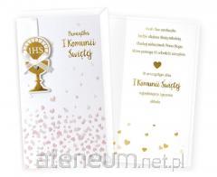 Każda kartka w kolekcji Passion Moments to małe arcydzieło - wyjątkowe i niepowtarzalne, piękne wizualnie. Kartki PM są bardzo bogato zdobione, a jednocześnie skromne i stylowe, cały efekt tkwi w detalach i doskonałym wykonaniu. W zależności od wzoru, na kartkach znajdują się dekoracje ze złotej, srebrnej, perłowej lub holograficznej folii, a także doklejki biżuteryjne, kokardki, brokat, laserowe wycięcia, wstążeczki i inne dodatki. Wnętrze karnetu to zawsze atrakcyjna grafika i tekst życzeń. Kartki mają w komplecie dopasowaną kopertę. Cechy szczególne: zdobienie: przynajmniej dwie folie (metaliczne/perłowe/holograficzne), brokat, elementy doklejane, wycięcia laserowe, wstążeczki - w zależności od wzoru, wnętrze: z delikatną grafiką, wyjątkowe życzenia w środku, w komplecie: dopasowana kolorystycznie koperta, okazja: komunia Wymiary karnetu po złożeniu: 11,4 x 21,5 cm.