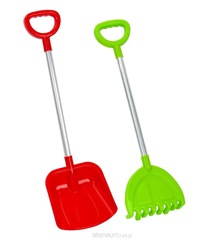 Zestaw składa się z 2 elementów: dużych grabek oraz łopatki z aluminiowym trzonkiem. Poprzez połączenie tych dwóch produktów, dziecko otrzymuje komplet niezbędnych narzędzi do zabawy na piasku. Akcesoria wykonane są z trwałych i bezpiecznych materiałów, dzięki czemu odporne są zarówno na warunki atmosferyczne jak i są bezpieczne dla dzieci.