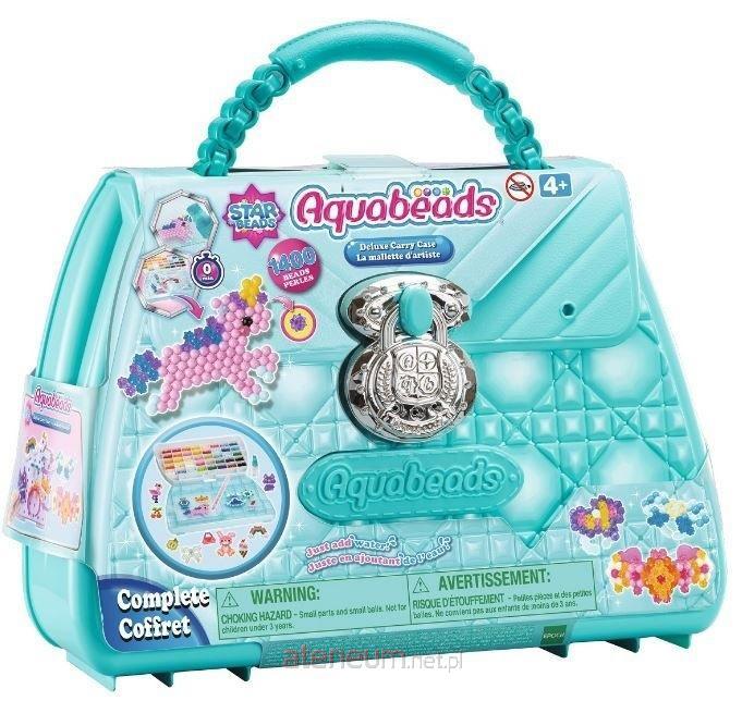 Koraliki Aquabeads oryginalne od 2004 roku! Zestaw startowy Aquabeads w walizce zawiera wszystko, czego potrzeba, aby rozpocząć wspaniałą przygodę z koralikami. 900 kolorowych koralików, zestaw arkuszy z szablonami i podkładka do układania z systemem Flip Tray pozwalają na tworzenie wspaniałych obrazków i figurek. Dzięki systemowi Flip Tray zabawa toczy się jeszcze szybciej, ponieważ gotowe figurki schną na dodatkowej podkładce, a nie jak dotychczas na podkładce do układania koralików. Sposób postępowania: Ułóż motyw, spryskaj go wodą, odwróć Flip Tray i pozostaw figurkę do wyschnięcia. Po odwróceniu podkładka do układania koralików jest znowu wolna i można dalej tworzyć na niej nowe figurki. Po wyschnięciu koralikowe obrazki można przymocować do nowej tablicy dekoracyjnej i stworzyć wspaniałą dekorację do pokoju dziecięcego. Również samą walizkę można ozdobić gotowymi dziełami z koralików. Można w niej przechowywać koraliki i wszystkie akcesoria. Dzięki wygodnemu uchwytowi walizka to idealny przenośny warsztat Aquabeads. Zestaw startowy Aquabeads w walizce zawiera 900 kolorowych koralików, zestaw arkuszy z szablonami, spryskiwacz, aplikator 2-w-1, podkładkę dekoracyjną do wykonanych figurek oraz praktyczną i pojemną walizkę z systemem Flip Tray. Produkt przeznaczony dla dzieci od czterech lat.