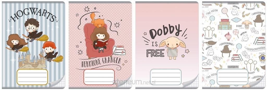 Zeszyt A5, posiada 16 kartek o gramaturze 70 g/m2 w kratkę. Charakteryzuje się estetycznym, lakierowanym wykończeniem i okładką z serii Harry Potter. Na zewnętrznej stronie okładki: imiennik - miejsce na wpisanie imienia, nazwiska, klasy.