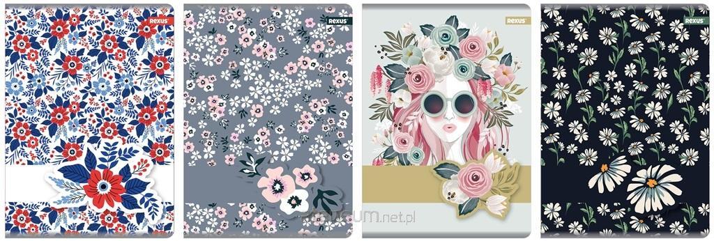 Zeszyt A5, posiada 80 kartek o gramaturze 70 g/m2 w kratkę. Charakteryzuje się estetycznym wykończeniem i modną grafiką Flower na okładce.