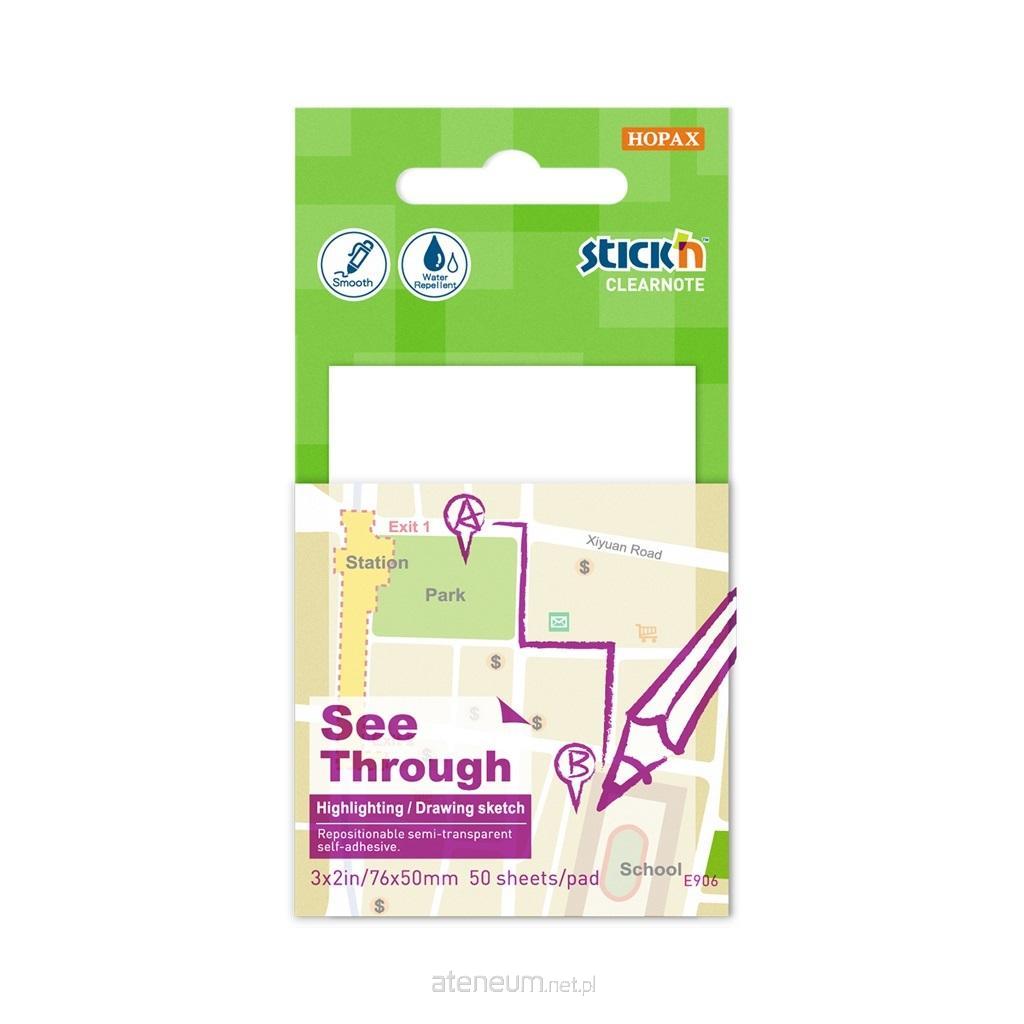 Przezroczysty, bezbarwny notes samoprzylepny zawierający 50 karteczek o wielkości 51 x 76 mm.