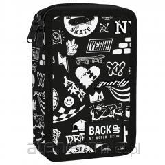 Owalny piórnik szkolny z klapką to niezbędny przedmiot uczniów. Wewnątrz na klapce znajdują się gumowe uchyty na przybory do pisania oraz skrzydło, na którym jest kieszonka z siateczki zamykana zamkiem błyskwicznym i kolejne gumowe uchwyty. Komora główna jest pojemna, korpus dodatkowo usztywniany. Na piórniku znajduje się motyw z serii Harry Potter