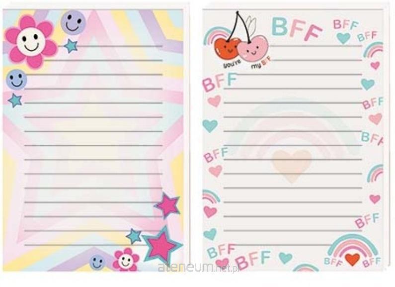 Notes A6 posiada 80 kartek z kolorowym poddrukiem. Grzbiet klejony po krótszym boku. Charakteryzuje się estetycznym wykończeniem i modną okładką idealną dla dziewczynek