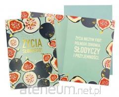 Karnet bez tekstu wewnątrz, w formacie B6 z kopertą, wyprodukowany w Szwecji.