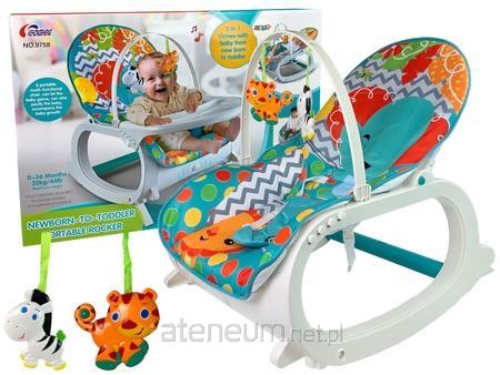 Kołyska Bujaczek Fotelik Krzesełko do Karmienia 2 w 1 Wibracja Muzyka Wygodny fotelik, w którym maluszek może odpoczywać i oddawać się zabawie, jest bardzo istotny podczas kompletowania wyprawki dla niemowlaka. Prezentujemy zielony bujaczek ozdobiony wzorami i bajkowymi zwierzątkami. Zaciekawi każdego malucha. Zaprojektowano go z myślą o noworodkach i starszych maluchach. Mogą z niego korzystać dzieci do 3 roku życia. Maksymalne obciążenie to aż 20 kg. Kołysanie to naturalny ruch dla Twojego dziecka, przypominający błogi czas spędzony w brzuszku mamy. Twój maluch kołysanie traktuje jako coś znanego i bezpiecznego. To właśnie podczas kołysania się uspokaja. Leżaczek dzięki intuicyjnej obsłudze, a przede wszystkim prostej konstrukcji, może być używany na różne sposoby. Z powodzeniem wykorzystasz go jako bujaczek dla maluszka, a także jako klasyczny fotelik dla dziecka, który rozłożysz w każdych warunkach. Wielofunkcyjność siedziska dla malucha sprawia, że możecie zabrać go ze sobą wszędzie, a w zależności od sytuacji zmienić jego zastosowanie. Dodatkowo nad siedziskiem znajduje się okrąg z przyjaznymi maskotkami. Ten fotelik rośnie razem z dzieckiem ! Gdy dziecko urośnie, wystarczy usunąć pasy zabezpieczające. Zawieszki z pewnością przyciągną uwagę dziecka, zachęcając do treningu rączek. Bujak ukoi zmysły dziecka, pomoże w zasypianiu, dzięki wibracją, a przyjazna muzyczka uspokoi i skłoni do zabawy malucha. Posiada następujące funkcje: -siedzisko odchylane w 2 pozycjach - możliwość prania tkaniny w pralce - uspokajające wibracje, ułatwiające zasypianie - rozkładana podpórka do karmienia - głębokie siedzisko - 3- punktowy pas zabezpieczający Wymiary krzesełka: 64 cm x 40 cm x 66 cm Wymiary siedziska: długość- 71 cm szerokość- 40 cm max głębokość siedziska- 15 cm Wymiary wiszących zabawki: około 14 cm x 10 cm x 4 cm Wysokość okręgu od bujaczka: około 30 cm Długość okręgu: około 72 cm Wymiary opakowania: 58 cm x 45 cm x 9 cm Bujaczek zasilany jest 3 sztukami baterii AA 1,5V, które nie są dołączone do zestawu, natomiast pluszowy słonik posiada dwie baterie AG13. Przeznaczony dla dzieci od pierwszych dni życia. Zgodny z normą EN71. Zabawka wykonana jest z certyfikowanego materiału.