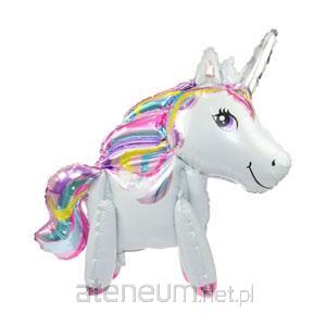 Duży balon foliowy w kształcie bajkowego jednorożca. Balon został wyprofilowany tak, aby po napełnieniu powietrzem mógł samodzielnie stać. Może pełnić funkcję elementu dekoracyjnego przyjęć dziecięcych lub służyć do zabawy pod okiem dorosłego opiekuna. Balon posiada samozaciskający się wentyl - nie trzeba go dodatkowo wiązać. Wymiary balona: przed napompowaniem: 74x67cm, po napompowaniu: 54 x 54cm.
