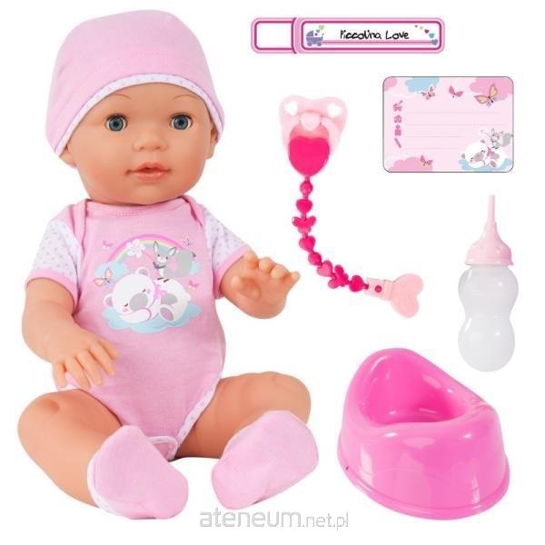Piccolina Love to 42 centymetrowa lalka z akcesoriami. Jeśli naciśniesz prawą rękę Piccolina Love, usłyszysz słodkie dźwięki dziecka. W tym samym czasie lalka będzie pięknie mrugać oczami. Jeśli lekko ściśniesz lewa rękę, Piccolina Love zamknie oczy i uśnie. Naciśnij ponownie jej lewa rękę, a Piccolina Love radośnie się obudzi. Podczas karmienia Piccolina Love porusza ustami i mlaska. Jeśli jest wypełniona wodą, wystarczy nacisnąć jej brzuszek a ona sika na nocnik. Piccolina Love śmieje się i chichocze. Funkcje lalki oferują możliwości dwóch trybów gry. W każdym trybie odtwarzania słychać różne dźwięki dziecka (tryb odtwarzania 1: dźwięki dziecka bez płaczu, tryb odtwarzania 2: dźwięki dziecka).