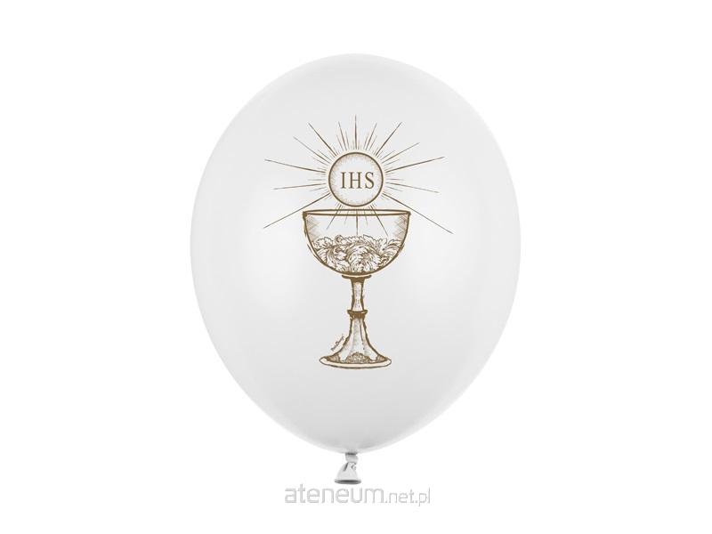 Balony Strong IHS w kolorze Pastel Pure White z dwustronnym, złotym nadrukiem, średnica 30 centymetrów.(1 op. / 6 szt.)