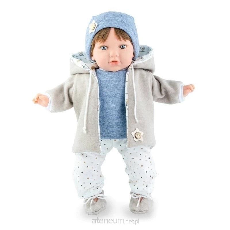 Słodki Teo ma winylowe kończyny oraz miękkie ciało z tkaniny, które pokochasz przytulać od pierwszego spotkania. Jego twarz jest bardzo urocza i ma dziecięce rysy twarzy. Dodatkowo urodę lali podkreśla dopasowana stylizacja w pastelowych kolorach.