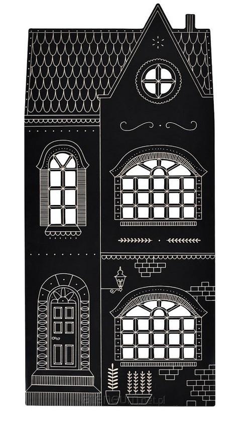 Kamieniczka z jednej strony jest pokryta farbą tablicową i posiada wygrawerowane elementy, z drugiej natomiast jest biała.