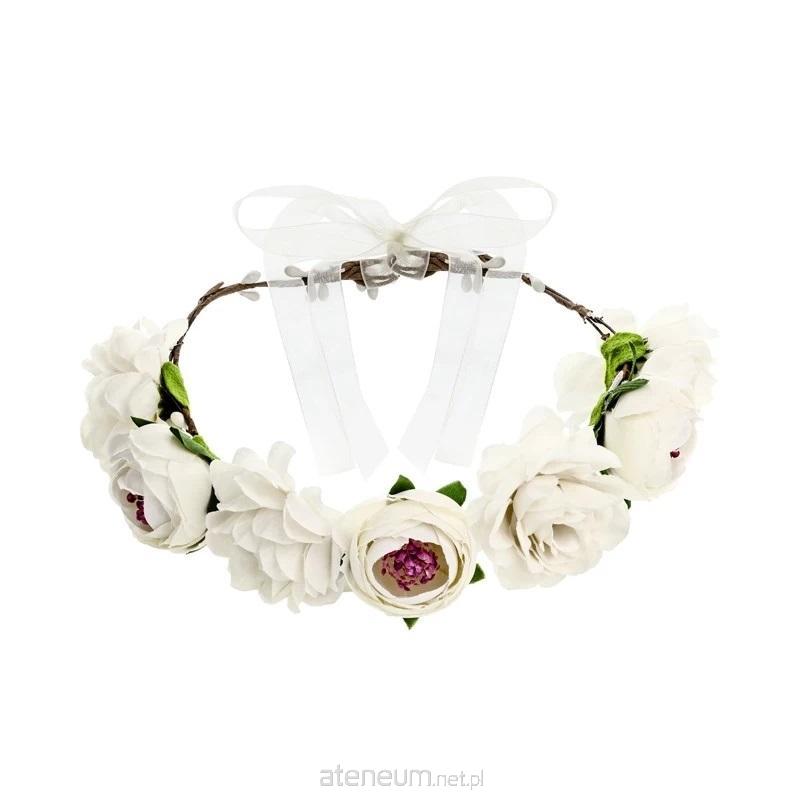 Wianek z kwiatami w kolorze białym, średnica ok. 17 cm.