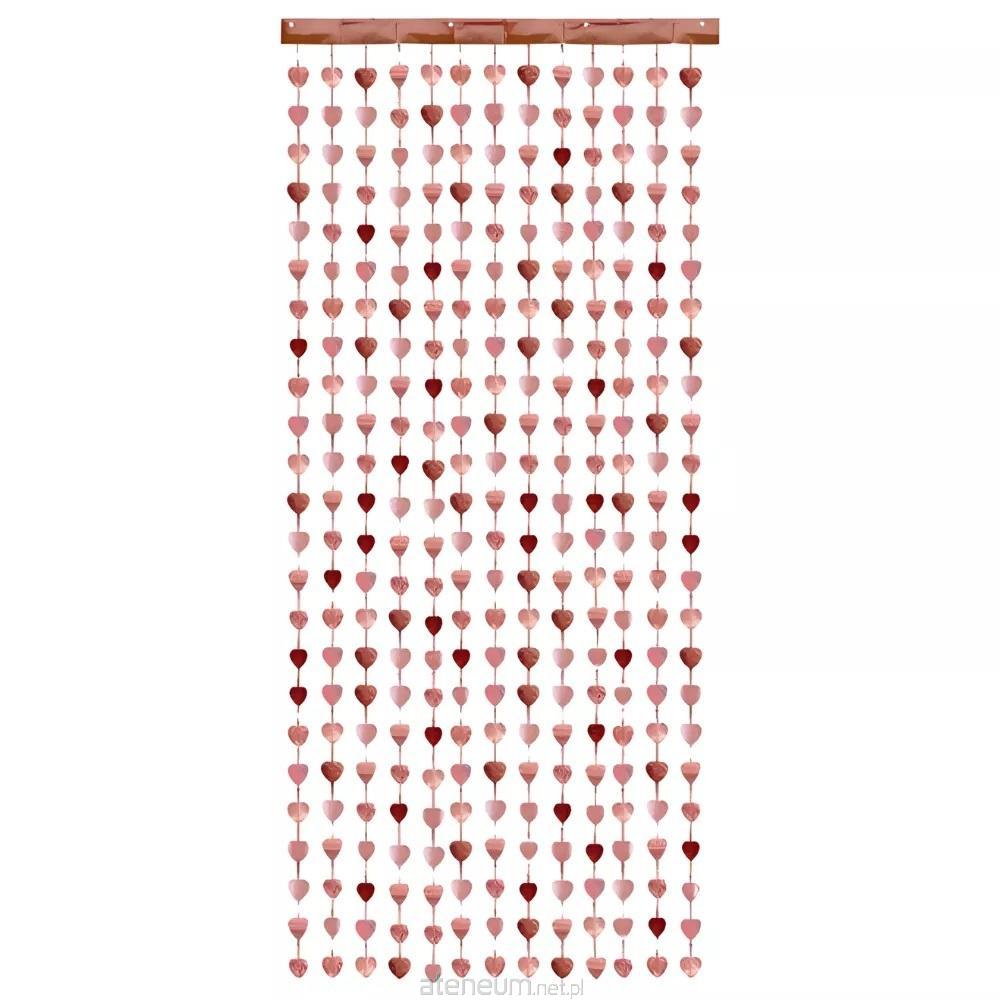 Kurtyna - Serca wykonana z folii w kolorze różowego złota, szerokość ok. 100 cm, długość ok. 245 cm