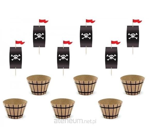 "Zestaw do muffinek Piraci, zestaw zawiera 6 papilotek wykonanych z papieru kraft (wymiary po złożeniu ok. 4,8 x 7,6 x 4,6 cm) oraz 6 pików (wysokość ok. 20 cm). (1 op. / 6 szt.)"