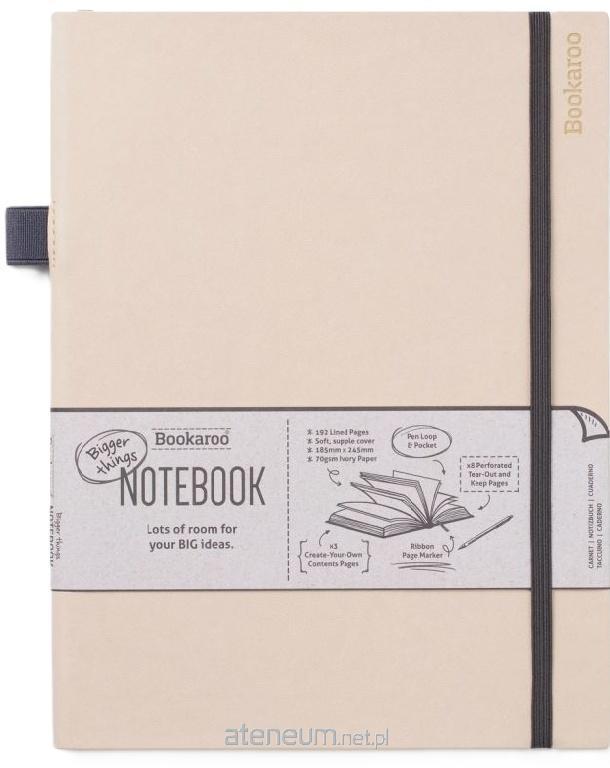 Ozdobny notatnik z elastyczną okładką w linie. W środku znajdują się 192 strony, z czego 8 jest perforowanych, aby można je wyrwać. Dobrej jakości papier, który jest w kolorze kości słoniowej. Notatnik posiada wstążkę-zakładkę, gumkę do zamykania, uchwyt na długopis oraz wewnątrz tylnej okładki kieszeń-kopertę.
