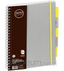Miękka, przyjemna w dotyku oprawa wykonana z materiału pokryciowego Vivella. Notes zamykany na gumkę, posiada również gumkę na długopis. W górnej części okładki tłoczenie napisu notes. Drukowany na papierze białym, zadruk w kratkę; bloki szyte nićmi; kapitałka i tasiemka białe; posiada na każdej stronie miejsce na wpisanie daty. Pakowany pojedynczo w woreczek foliowy.