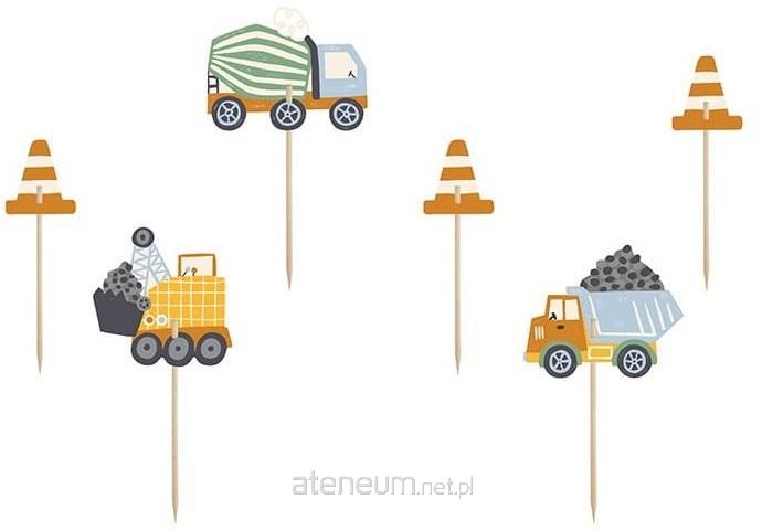 Dekoracje do muffinek - Pojazdy budowlane, zestaw zawiera 6 elementów (4 wzory), mix kolorów, wysokość ok. 4 - 7 cm. Produkt do samodzielnego złożenia.(1 op. / 6 szt.)