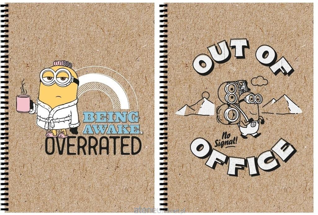 Kołozeszyt A4, posiada 80 kartek o gramaturze 70 g/m2 w kratkę. Charakteryzuje się estetycznym wykończeniem, modną grafiką z motywem z serii Minionki na okładce i czarną spiralą. Dostępne 2 wzory
