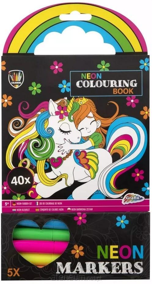 Kolorowanka neonowa o wymiarach 15 x 15 cm. Składa się 40 stron do pokolorowania, w zestawie także neonowe flamastry 5 sztuk. Kolorowanka ciekawymi obrazkami sympatycznych postaci zachęca do pokolorowania, wraz z neonowymi flamastrami załączonymi do zestawu, przeznaczona jest dla dzieci od 3 roku życia.