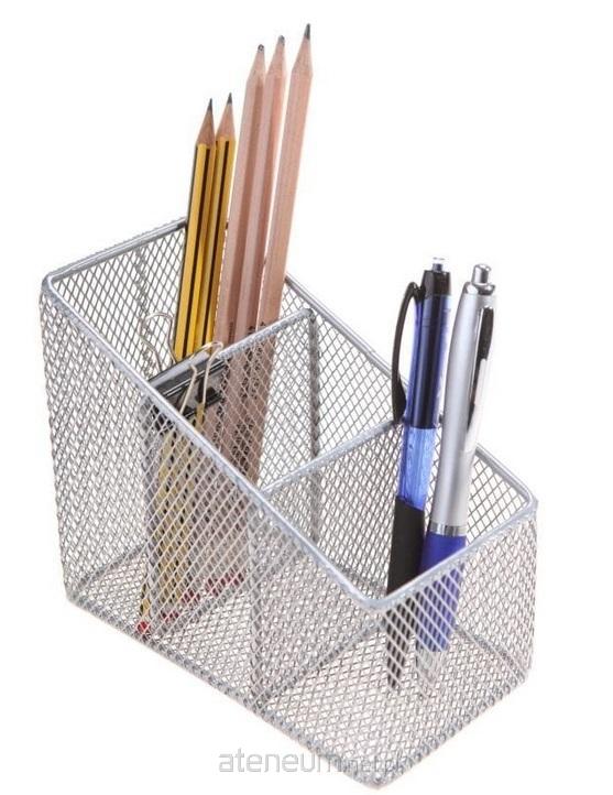 Przybornik na długopisy metalowy srebrny MEMOBE