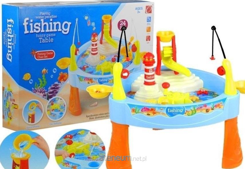 Gra zręcznościowa łowienie rybek Niemalże każdy zna klasyczną grę, jaką jest łowienie rybek. Przedstawiamy innowacyjną wersję w ulepszonym, oryginalnym wydaniu. Nasza propozycja to połączenie gry zręcznościowej z wygodnym stolikiem. Funkcja ta ułatwi zabawę najmłodszym zawodnikom, przysparzając im wiele radości. Kolorowy zestaw składa się między innymi z: - blatu z trzema nóżkami, - muzycznej latarni morskiej, - zjeżdżalni, - 2 wędek, - 2 sitek, - rybek, rozgwiazd i krabów, - śmigiełka, - zestawu ozdobnych naklejek. Prezentowany wariant zabawki wyróżnia się nie tylko rewelacyjnym połączeniem nowoczesnego, dziecięcego wzornictwa, pozbawionego ostrych elementów, z przyjemną dla oka, delikatną kolorystyką. Stolik z basenem posiada efekty specjalne - zabawka gra i świeci. Naciśnięcie latarni morskiej spowoduje włączenie, a następnie wyłączenie zabawki. W spodniej części basenu znajduje się miejsce na umieszczenie baterii, by zabawka mogła działać prawidłowo. Co ciekawe, wszelkie stworzenia morskie znajdujące się w baseniku posiadają magnesik, który ułatwia wyłowienie ich z głębin wody. W centralnej części zabawki umieszczone jest śmigiełko, które sprawia, że woda faluje niczym w morzu. Gra jest bardzo intuicyjna i prosta, jej zasady pojmie w mig każdy trzylatek. Po umieszczeniu wszystkich stworzonek w wodzie należy wziąć wędkę w dłoń i sprytnie je łapać, a następnie umieszczać w pojemniczku znajdującym się w bocznej części stolika. Z zabawki może korzystać samo dziecko, jednak uważamy, że gra będzie zdecydowanie weselsza, kiedy dołączy do niego rodzeństwo lub rodzice. Zabawę wygrywa ten z zawodników, w którego pojemniku będzie się znajdować więcej kolorowych elementów. Prezentowany basen do łapania zwierzątek wodnych zapakowany jest w duże, poręczne pudełko kartonowe, w którego górnej części umieszczona jest rączka ułatwiająca przenoszenie. Wszelkie elementy składające się na zestaw wykonane są z bezpiecznego, atestowanego tworzywa, dzięki czemu zabawka jest bardzo wytrzymała i solidna. Stolik posiada certyfikat bezpieczeństwa CE, przeznaczony jest dla dzieciaków powyżej 3. roku życia. Montaż stolika jest bardzo prosty - na opakowaniu znajduje się obrazkowa instrukcja składająca się z kilku kroków. Wymiary zabawki: - złożony stolik: 40,5 cm x 33 cm x 31,5 cm, - nóżki: 14,5 cm x 7 cm, - wędki: 17, 5 cm, - rybki: 3 cm, - sitka: 9 cm x 4,5 cm. Wymiary opakowania gry: - 42,5 cm x 31 cm x 9 cm.
