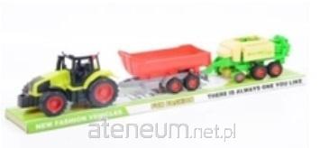 Ciągnik ze zgrabiarką na napęd frakcyjny czerwony