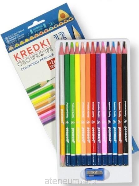 Kredki ołówkowe trójkątne + temperówka 12 kolorów + 2 kolory gratis