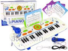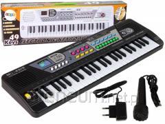GITARA Z MIKROFONEM + PIECYK/WZMACNIACZ Muzyczna gitara dla młodych, rockowych dzieci. Piecyk z mikrofonem wzmacniaczem jest propozycją dla maluchów uwielbiających występy przed publicznością. Gitara elektryczna ma 6 metalowych strun, czułych na dotyk. Zestaw zawiera: - Gitarę elektryczną - Wzmacniacz - Mikrofon ze statywem Funkcje Gitary: - regulacja głośności - wybór tonów - dźwignia - 6 melodii demo - regulacja tempa - stop - wybór dema - funkcja ON/OFF w mikrofonie - pasek do gitary Wzmacniacz - ma 3 wejścia: na gitarę, na mikrofon, na odtwarzacz mp3 - posiada regulację głośności tak jak gitara - podłączając własne mp3 możemy swobodnie śpiewać razem z wokalistą z ulubionej piosenki Mikrofon Podłączony mikrofon pogłaśnia głos aby było słychać piosenkarza podczas występów. Twoje dziecko lubi muzykę i chciałoby zostać prawdziwym Rockmanem? Ta gitara jest dla Ciebie! Wymiary: Gitara: 72 cm x 25 cm x 4 cm Statyw: od 65 cm do 109 cm Zestaw zapakowany w kolorowym pudełku.