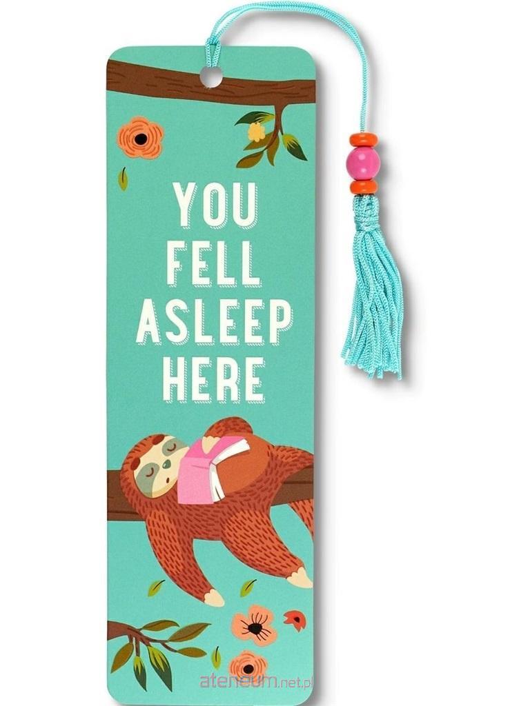 Zakładka do książki firmy Peter Pauper Press - Tu zasnąłeś (You Fell Asleep Here). Zakładka ma dopasowaną kolorystycznie wstążkę z frędzlem oraz koralik. Barwne, trwałe, zabawne lub motywujące nadruki sprawią, że czytanie będzie jeszcze ciekawsze. Każda zakładka jest drukowana na trwałym, powlekanym kartonie i pakowana w przezroczystą osłonkę. Uniwersalny wymiar 6,4 x 18,1 cm.