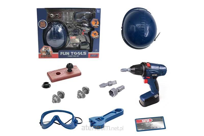 W zestawie: wkrętarka, deseczka, 3 śrubki, 3 końcówki do wkrętarki, kask, okulary ochronne, klucz francuski, identyfikator, funkcje: 2 tryby obrotów wkrętarki wkręcanie i wykręcanie, regulacja prędkości wkrętarki, wym. Opk: 40x 32,5 x 9,5 cm., baterie: 2 x AA brak w zestawie, 3+