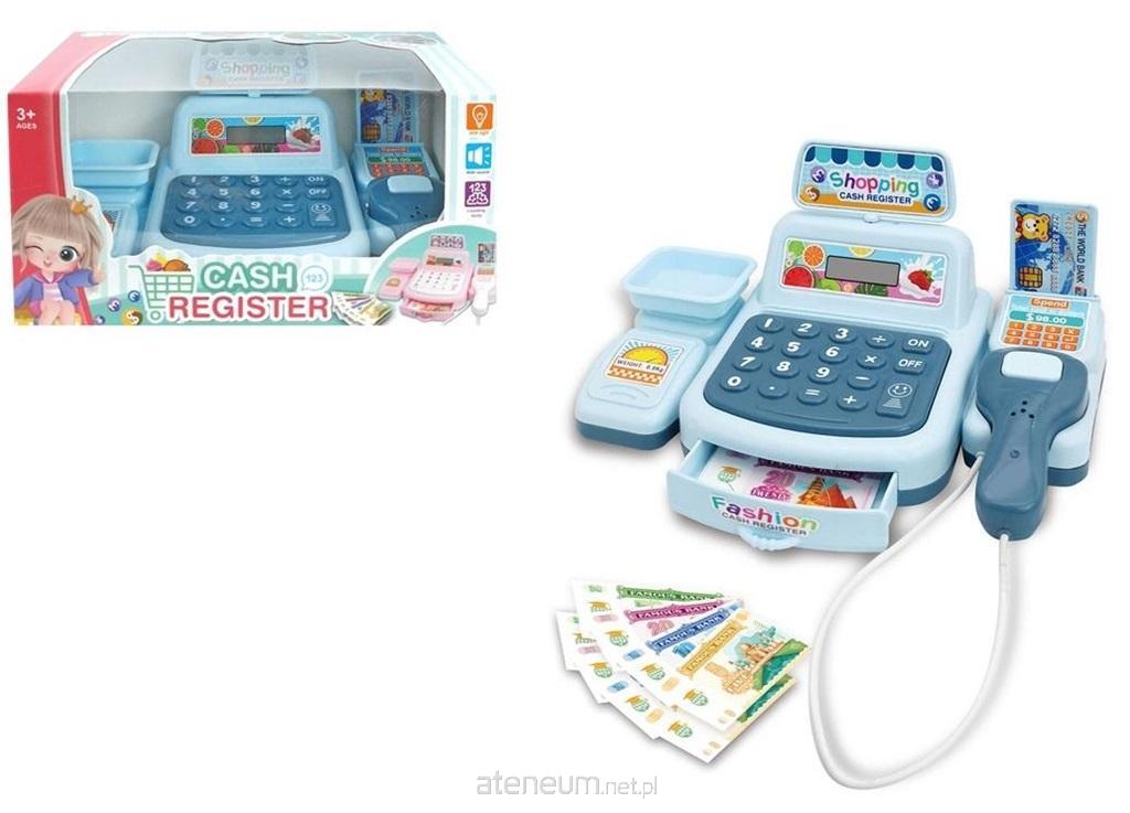 Kasa sklepowa na bateria w zestawie z czytnikiem, wagą i pieniążkami.